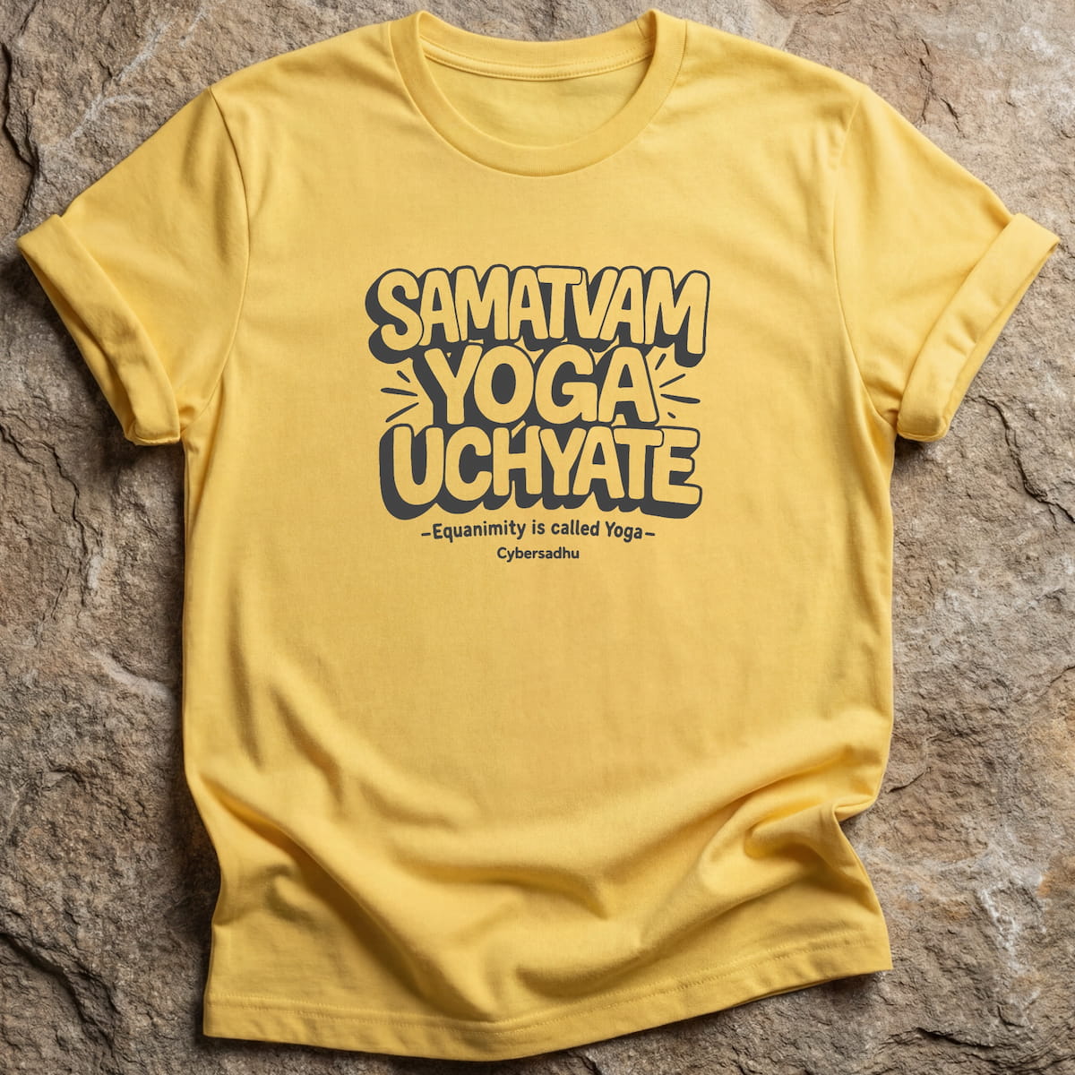 Embrace the "Wisdom of Evenness" with our Samatva design. Centred on Krishna’s sacred utterance in the Bhagavad Gita, “Samatvam Yoga Uchyate – Equanimity is called Yoga” this garment celebrates the soul's ability to remain serene amidst the dualities of life. Just as the ocean remains deep and still despite the waves on its surface, Samatva invites you to dwell in a state of inner composure and universal peace. Wear it as a sacred affirmation of your commitment to a life lived in harmony and spiritual grace.